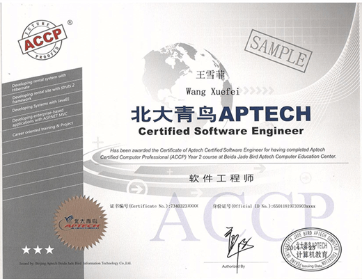 北大青鸟APTECH认证为国际认证,全球IT企业广泛认可。持此证书,可在跨国公司、国外IT企业获得同等技能认定。